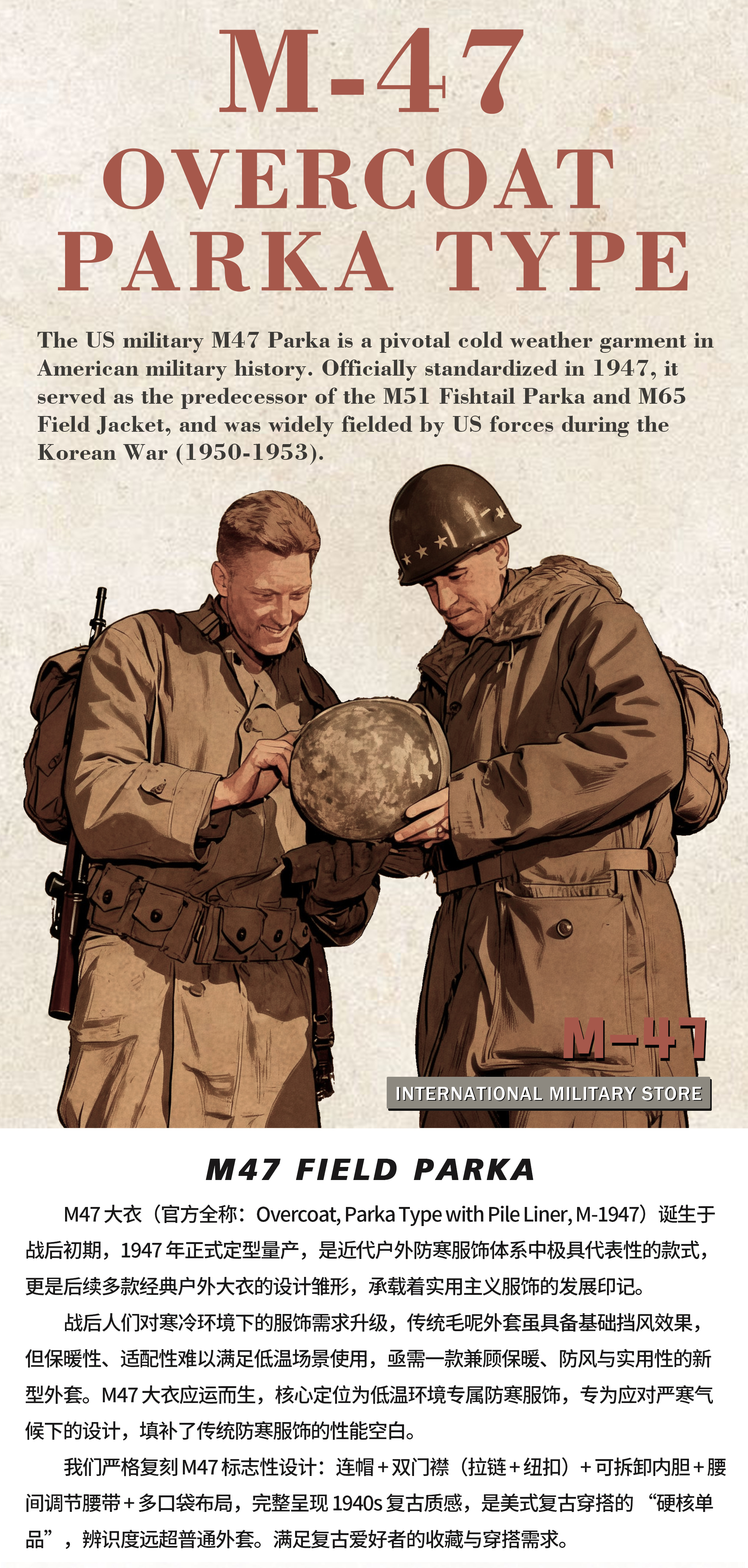 WW2 US MILITARY ARMY GREEN M47 COAT JACKET